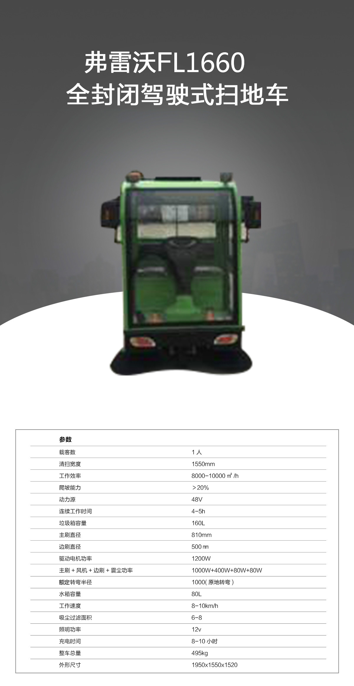 產(chǎn)品分類:駕駛式掃地機產(chǎn)品特點:1、全封閉駕駛式掃地機1660特有出口型免維護電瓶,區(qū)別于市面上其他電動掃地機,其智能型充電機能有效延長電瓶使用壽命,可使連續(xù)工作時間更長。2、全封閉設(shè)計保護工作人員身心健康。3、底部主刷和兩側(cè)邊刷可自由調(diào)節(jié)高度使清掃效率更高,清掃寬度達(dá)到1550mm,完成1000㎡的地面清掃工作僅需6分鐘,比傳統(tǒng)人力清掃效率提高幾十倍,并且還能節(jié)省人力成本,省時省力、更省錢!4、控制面板友好,操作簡單、易懂,使用前工作人員無需特別培訓(xùn),“保潔大媽也能輕松操作完成清掃任務(wù)”。5、配備的優(yōu)良吸塵系統(tǒng)能夠有效抑制揚塵的產(chǎn)生,避免二次污染。適用環(huán)境:車站、機場、物業(yè)小區(qū)、倉庫、車間、園區(qū)、廣場、學(xué)校、醫(yī)院、商場、公園、市政單位、街道等公共場所地面。